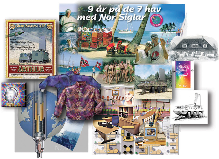 Her vises noen eksempler på illustrasjoner i forskjellige teknikker og manérer utført av Halvor Nome. Eksempelvis frihåndstegning og karikatur, teknisk pregede illustrasjoner som perspektiv-, spreng- eller røntgentegninger for hus- og delekataloger, visualisering av produktidéer eller prototyper - både i plantegningog 3D versjon, billedmontasjer og -manipulering osv. .